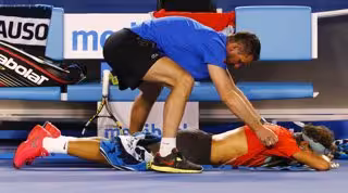 Rafa Nadal tuvo un problema en la zona lumbar, que calificó como "espasmo muscular", que le afectó desde el calentamiento de la final del Abierto de Australia ante el suizo Stanislas Wawrinka y que se le agravó a partir del segundo set, acabándole por lastrar de forma definitiva en el choque, aunque llegó a ganar un set antes de caer en cuatro por (6-3, 6-2, 3-6, 6-3).