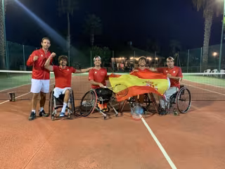 Los componentes de la selección española de tenis en silla de ruedas celebran su pase a la final de la Copa del Mundo por Equipos - RFET