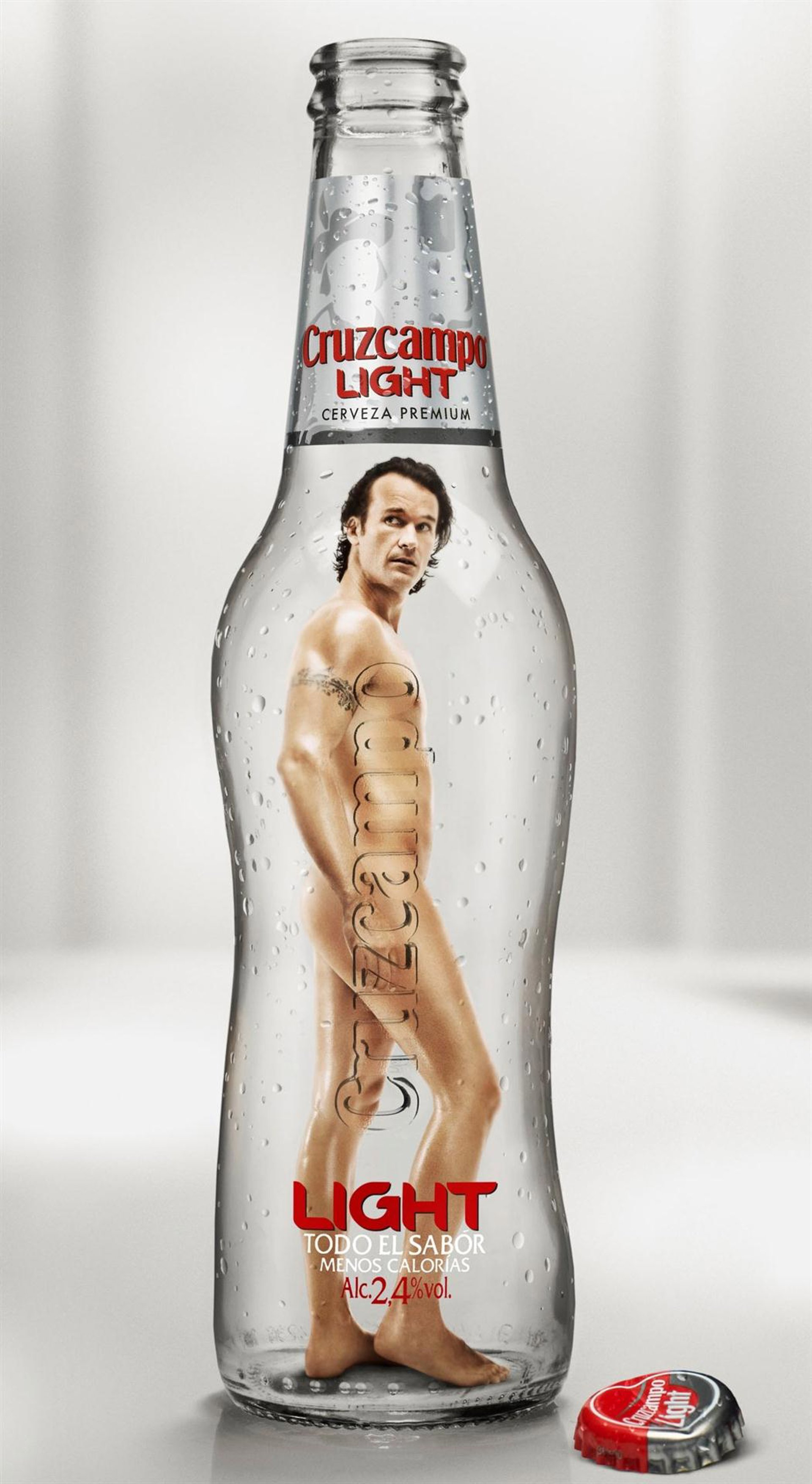 El tenista Carlos Moyà se ha convertido en la nueva imagen, junto a la modelo Ariadne Artiles, de la nueva campaña de comunicación 'Cruzcampo Light al desnudo', posando como un auténtico modelo para la cervecera.