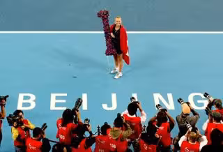 Wozniacki, que hace que Dinamarca alcance por primera vez este privilegio, se deshizo sin contemplaciones de su rival, que la había derrotado en Wimbledon, por un claro 6-3, 6-2 para meterse así en los cuartos de final de la cita asiática, aunque el premio fue mayor.