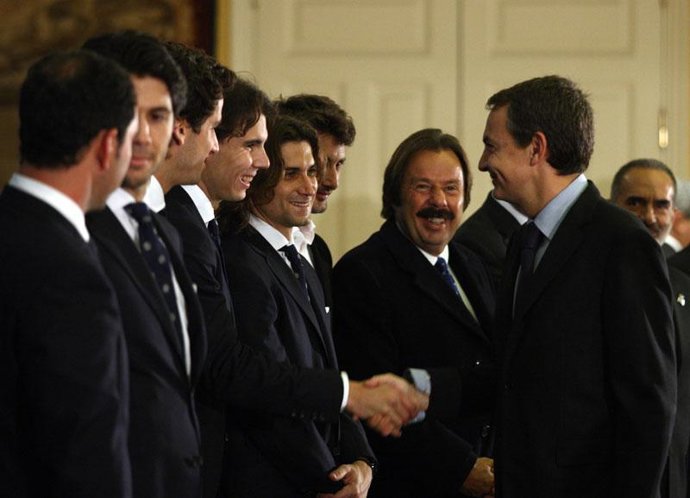 Rodríguez Zapatero recibió en el Palacio de la Moncloa a la comitiva del conjunto español, encabezada por el presidente de la Real Federación Española de Tenis, José Luis Escañuela y el capitán de Copa Davis, Albert Costa, en un acto en el que también estuvieron presentes el secretario de Estado para el deporte, Jaime Lissavetzky, todos los tenistas que han contribuido a conquistar el título y diversos representes de la Federación de tenis.