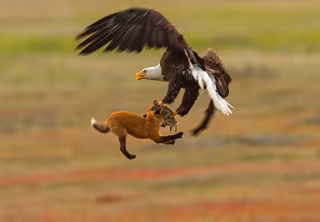El águila se acerca y el zorro pasa de depredador a presa en un abrir y cerrar de ojos. Tanto el conejo como el zorro son arrastrados por los aires durante unos segundos. El zorro no se rinde y se agita tanto como puede hasta que consigue zafarse. Eso sí, sin su preciada presa, que termina en posesión del águila hambrienta y vencedora.