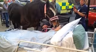 Este es el emocionante momento vivido en las puertas del Hospital cuando Bronwen, su querida yegua marrón, viajó desde la granja de la familia hasta allí para despedirse de su dueña, la que la había criado y alimentado desde que era un potrillo.