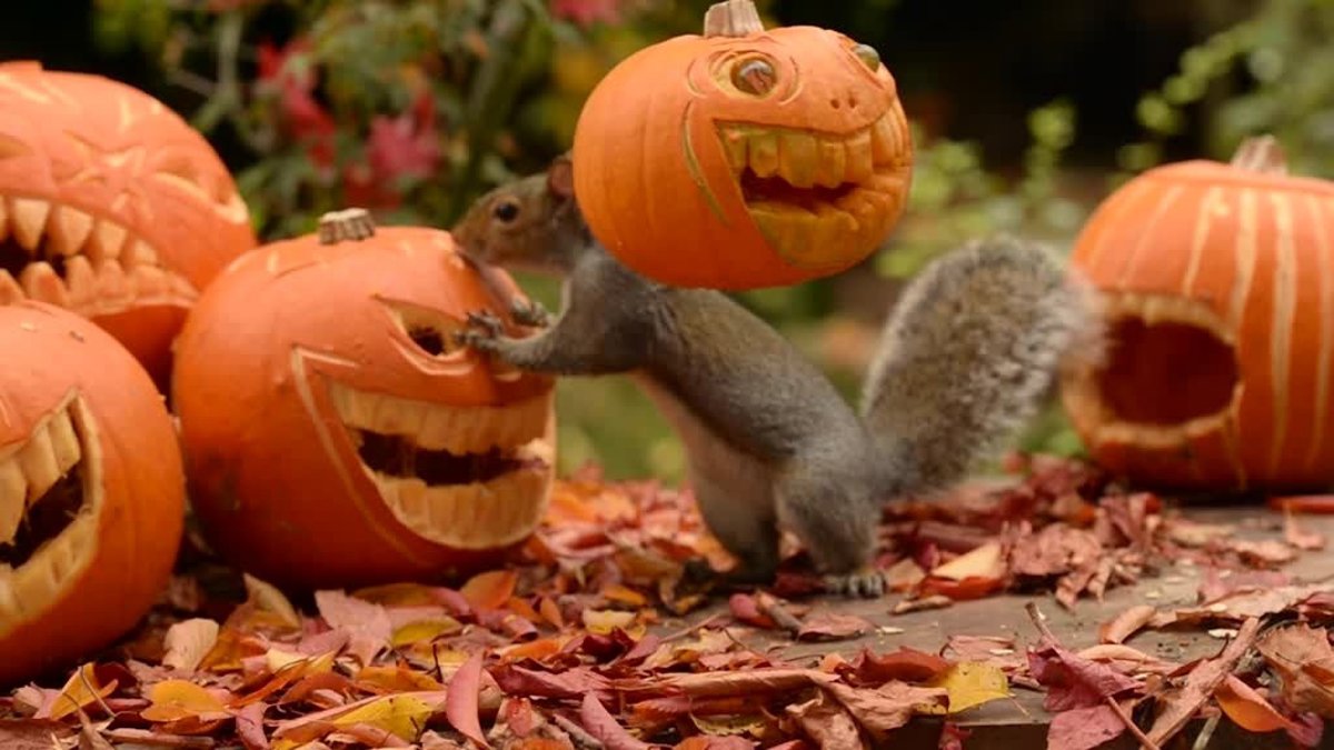 Estas descaradas ardillas están locas por un poco de diversión inspirada en Halloween. Al tropezar con una mezcla de calabazas talladas para explorar, estos pícaros roedores parecen estar a punto de embarcarse en sus propias actividades de truco o trato.