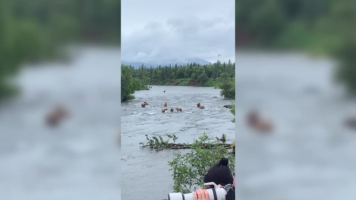 Travis pilló al grupo de osos pardos pescando en la zona de Brooks Falls del parque, donde consiguieron encontrar lo que buscaban.