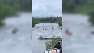 Este grupo de osos hambrientos fue captado a la caza de un delicioso pescado mientras merodeaba por un río cercano.