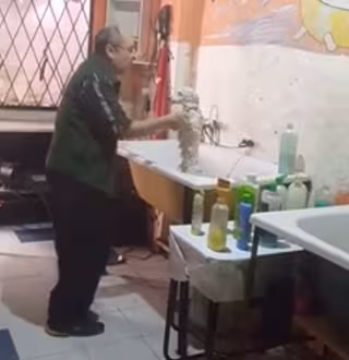 Muchos perros ven como una situación aterradora el tener que ir al baño a que sus dueños les laven. Si a los dueños muchas veces les cuesta sangre, sudor y lágrimas meterles bajo el agua, imaginaos lo que le puede costar a un profesional del área, a un peluquero canino. Pues esto no pasa en la peluquería canina Perrito Feliz de Buenos Aires, ya que Luis Antonio Caballero, el dueño del negocio, ha inventado una fórmula para hacerlo divertido para todos.