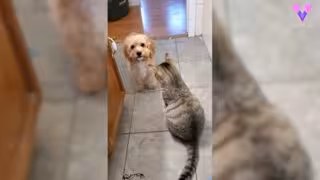 El pasado 26 de octubre, Louie, un cachorro de cuatro meses, estaba tratando de entrar en el baño de su casa en Nueva York, cuando Marvin, el gato de siete años, se lo impidió propinándole un arañazo.