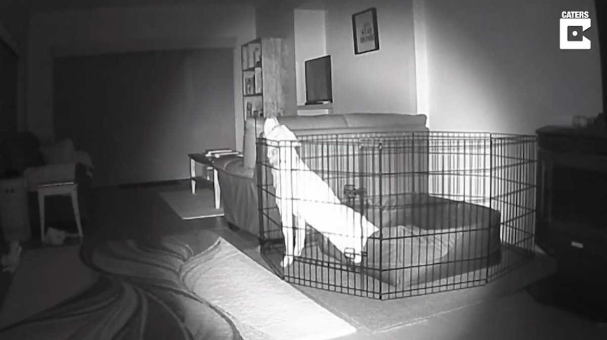 Freddy es un joven cachorro de 18 semanas que ha aprendido a escaparse de su jaula por las noches cuando se supone que debería estar durmiendo en su cama.