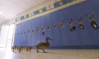Desde hace 13 años, Vanessa, una mamá pato, regresa a Hartland, Michigan, para poner sus huevos en el patio de la escuela primaria del pueblo y, después, recorrer los pasillos con sus patitos hasta llegar con seguridad a un estanque cercano.