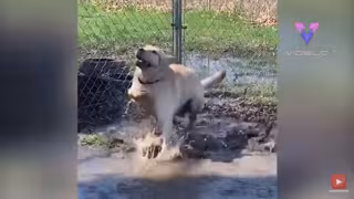 En un vídeo filmado por su dueña, se puede ver al labrador chapotear, feliz, en los charcos de barro cerca de una valla metálica llamando la atención de otro perro que se encuentra al otro lado.