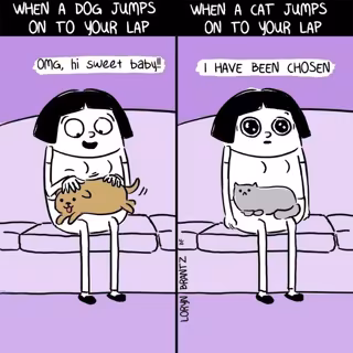 A continuación os dejamos siete diferencias (como las vidas de los gatos) entre cómo son los perros y cómo los mininos. Eso, sí, en divertidos dibujos que esperamos que te hagan pasar, al menos, un ratito divertido cuando los veas.