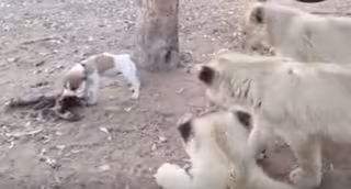Con conocimientos básicos de la cadena alimenticia, de la naturaleza y de la vida salvaje, cualquiera es capaz de llegar a la conclusión de que el enfrentamiento entre un perro y tres leones no augura nada bueno. Sin embargo, el Jack Russell que protagoniza este vídeo parece desconocer por completo todas estas teorías.