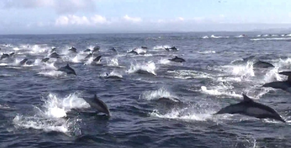 Al verse rodeados y aunque superiores en número, los delfines optan por seguir una estrategia de huida en forma de frenética estampida que quedó grabada por la cámara de Michael y posteriormente subida a YouTube.