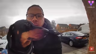 Un viejo y feliz paseador de perros ha sido pillado con el timbre de su casa a media canción sobre su adorable teckel.