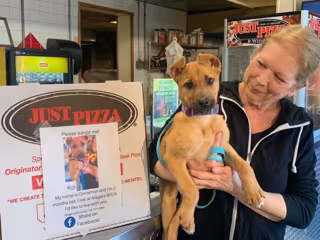 El refugio de animales Niagara SPCA anunció su asociación con la pizzería de Amherst, Nueva York, el pasado 28 de febrero en una publicación de Facebook: "Nos emociona compartir con vosotros que hemos hecho equipo con nuestros amigos de Just Pizza & Wing Co., para ayudar a nuestros perros a que consigan un hogar y sean adoptados. ¡Estad atentos a sus cajas de pizza este fin de semana!".