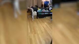 Derek lanza los juguetes a distintas alturas y Soju salta todo lo que puede para atraparlos, a veces incluso dando volteretas.