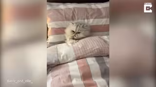 Este gato duerme en la cama de su dueño como un humano - YOUTUBE - CATERS - @ERIC_AND_OLLIE_