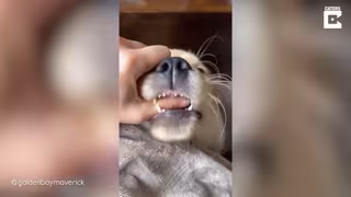 Su dueña, la estudiante universitaria Alex Sutor, de 24 años, de Illinois, Estados Unidos, grabó en vídeo a su mascota Maverick, su golden retriever de cuatro meses, mientras le enseñaba el diminuto diente que se le había caído.