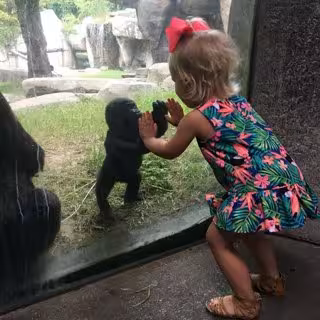 Entre las cientos de fotografías enviadas, la que protagonizan un gorila de 5 meses y una niña pequeña han conseguido conquistar los corazones de miles en la red social. Ellos son Gus y Braylee chocando sus palmas a través del cristal de la jaula de los gorilas del zoo en un tierno momento lleno de inocencia.