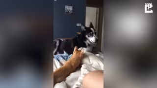 Al contrario que sucede normalmente entre animales de distinta especie, a este perro y a este gato les gusta juntarse de vez en cuando para jugar, aunque no siempre eligen el mejor momento.