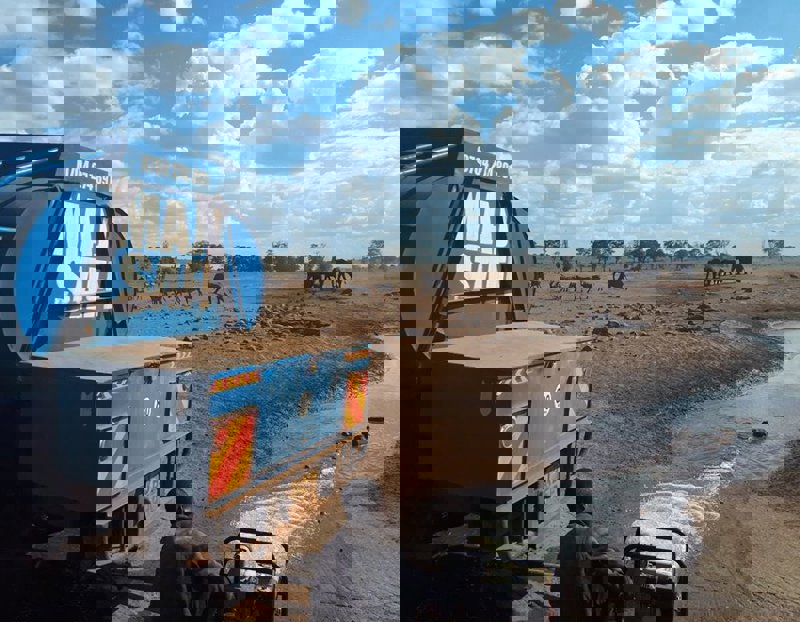 Entonces, Patrick alquiló un camión de agua especial para transportar durante 70 kilómetros unos 10.000 litros de agua al parque. Desde el momento en que el abrevadero se llenó diferentes especies de animales acudieron ansiosamente a beber. Patrick continuó haciendo esto hasta cuatro veces al día porque de no hacerlo los animales morirían de sed.