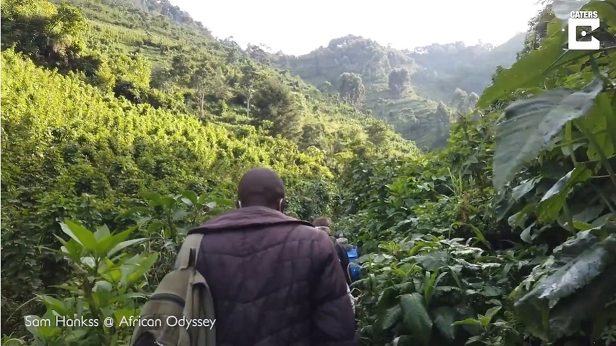 El guía de la expedición llevó a Sam y a su grupo desde el punto de partida en el corazón del parque hasta lo alto de unas colinas, atravesando por el camino por una densa vegetación, y disfrutando de las impresionantes vistas de Uganda.