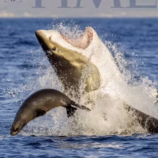 El ataque vertical es la técnica que un gran depredador como es el tiburón blanco utiliza para sorprender a sus presas y garantizarse la comida. Observarlo en primera persona, según Jenkins es un espectáculo asombroso.