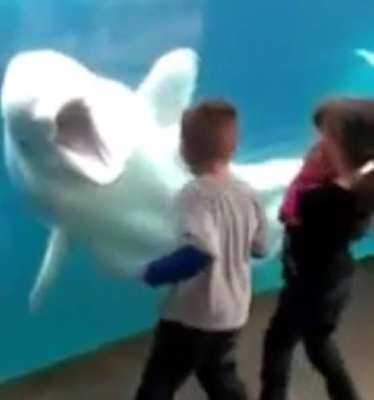 La actitud de los niños captó la atención de la ballena que logró hacerles pasar un rato divertido cada vez que abría la boca o que aproximaba su cabeza al cristal del acuario.