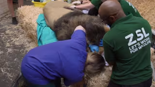 Este león en peligro de extinción fue sometido a una limpieza profunda y a fondo de sus orejas tras sufrir un dolor de oído crónico. Especialistas de todo el Reino Unido acudieron al zoo de Londres como parte de un plan de salud a largo plazo, y el equipo se puso manos a la obra para limpiarle los oídos.