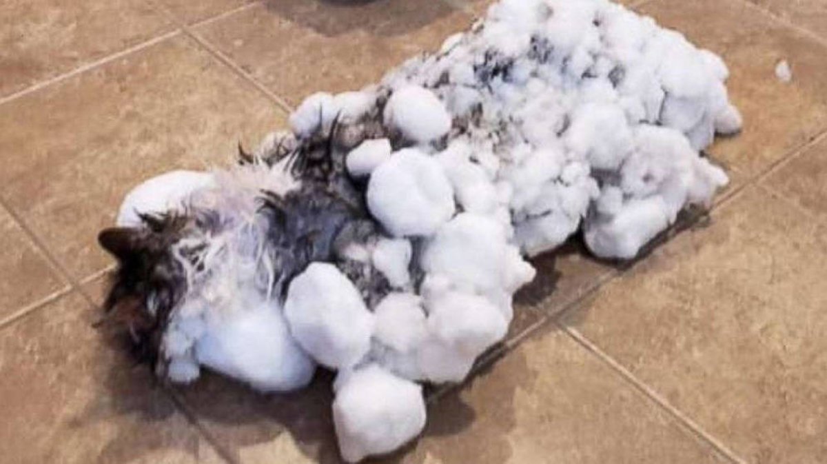 Cuando Fluffy llegó a la clínica de animales no tenía buen pronóstico. El animal estaba completamente congelado y cubierto de bolas de hielo por todo su pelaje. A pesar del panorama, el personal médico se puso manos a la obra.