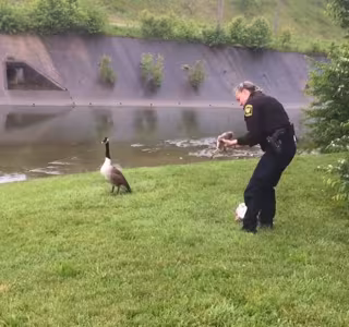 No es ciencia ficción, ni un cuento para niños. La historia es real y sucedió este pasado lunes cuando el agente de policía, James Givens, que se encontraba con su coche patrulla en un estacionamiento, se vio sorprendido por la llamada de atención de un ganso algo obstinado que no lo dejaría en paz.