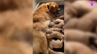 Esta mamá de Golden Retriever se las arregló para alimentar a su camada de 11 cachorros mientras todos movían alegremente la cola de la emoción.