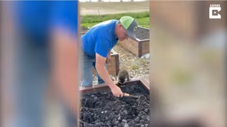 Si bien los mapaches suelen no ser bienvenidos en los jardines, especialmente de aquellos en los que se cultivan verduras u hortalizas, el pequeño Reba -al menos de momento- no presenta interés en destrozarlo, sino de ayudar a su dueño a plantar.