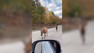 Mientras conducía por la ruta a paso firme, Lisa, que tenía la ventanilla bajada en ese momento, fue detenida nada menos que por una pareja de alces salvajes. Uno de los alces no se dejó amedrentar por el coche e incluso sacó la cabeza por la ventanilla, en busca de cualquier bocado que pudiera encontrar.