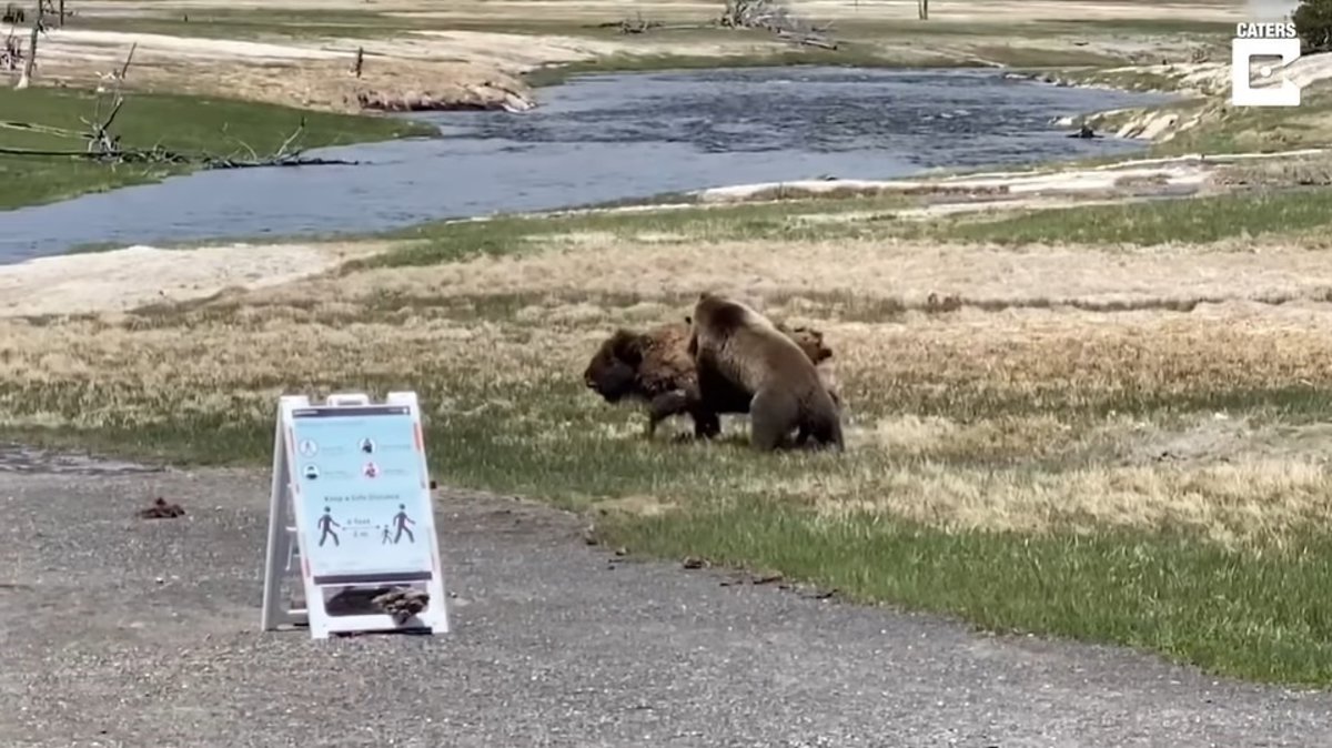 Los visitantes del Parque Nacional de Yellowstone fueron testigos el pasado 31 de mayo de un enfrentamiento a muerte entre un oso gris y un bisonte.
