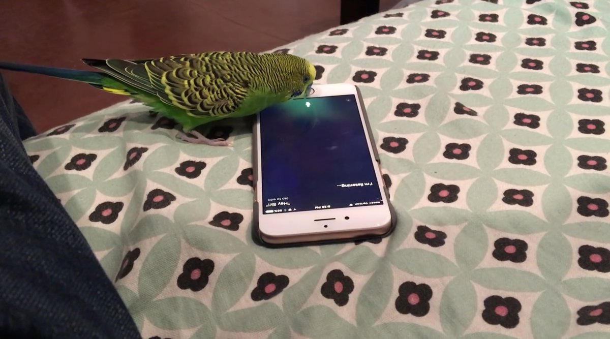Existen ciertos tipos de animales que son capaces de imitar al ser humano. Como por ejemplo los monos. Pero hay unos que imitan la voz humana. Véase los loros, las cacatúas o los periquitos. En este caso, vais a ver un vídeo de un periquito que es capaz, con su voz, de activar a Siri en el Iphone de su dueño.