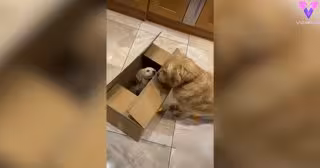 Estos dos perros con patas perfectas se hicieron virales después de que su humano publicara un vídeo de su primer encuentro. Las imágenes muestran una caja de cartón colocada en el suelo, antes de que un esponjoso y adorable cachorro de golden retriever aparezca para saludar a un intrigado hermano mayor.