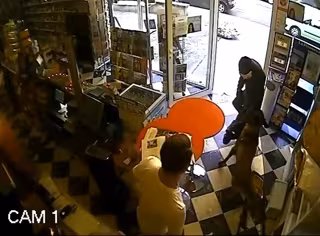 En las imágenes de vídeo grabadas por la cámara de seguridad de la tienda se ve al delincuente apuntando al dependiente. Por unos segundos, ambos desaparecen de la imagen. Lo siguiente que puede observarse es cómo un perro ataca al atracador mordiéndole su brazo izquierdo e impidiendo que cometiera el robo. El animal hizo retroceder al agresor, que no realizó ningún disparo, ni al perro ni al propietario de la tienda.