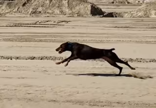 En el clip, que fue grabado el 28 de agosto de este año en Bakersfield, California, Estados Unidos, aparece un perro de raza Doberman pinscher muy entusiasmado por ponerse a correr. Tras él, la persona que graba el vídeo y que sigue sus pasos en coche.