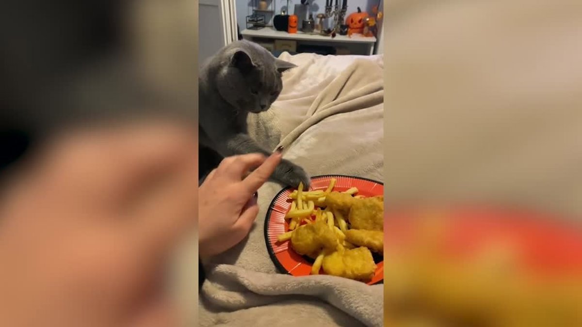 En el hilarante vídeo, el Sr. Smokey acerca sus patas al plato de nuggets, a pesar de que su dueño intenta apartarlo repetidamente. Desgraciadamente, no consigue coger un nugget, pero a sus seguidores les encanta el vídeo, que ha sido visto más de tres millones de veces en TikTok.
