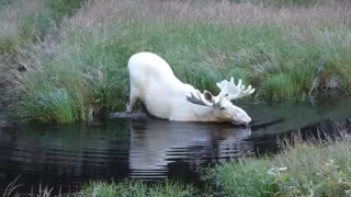 El destino quiso que Hans Nilsson, un concejal municipal de Eda, un pueblo de la región de Värmland (Suecia) se topara con un animal poco usual: un majestuoso ejemplar de alce blanco. Nilsson llevaba tres años buscándolo y no fue hasta estos días cuando el alce apareció en su cámara para dejarse filmar mientras cruzaba el río.