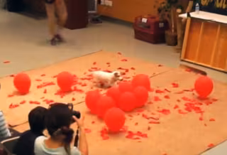 Twinkie ha superado el récord que logró Cally en 2015 en un concurso de televisión y que tardó 41:67 en romper cien globos. Viendo su actitud, estamos seguros de que además de haber sido el perro más rápido del mundo en realizar esta hazaña, Twinkie ha sido también durante unos segundos el perro más feliz del mundo.