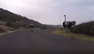 En un entrenamiento previo al gran día, Mishchenko y compañía salieron a "estirar las piernas" por las carreteras -aparentemente tranquilas- de la ciudad cuando protagonizaron una escena fuera de lo común. Un gran avestruz salió de la nada para unirse a lo que se terminó convirtiendo en una improvisada carrera.