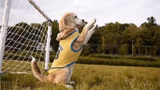 La fiebre del fútbol ha llegado al mundo animal. Hasta los perros apoyan a sus selecciones vistiéndose con los colores oficiales de su camiseta y algunos, como este Beagle futbolista, van más allá.