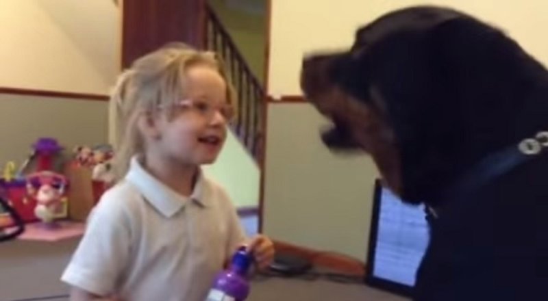 Los perros de raza Rottweiller son considerados perros de razas peligrosas, sin embargo, este vídeo es una prueba más de que los perros son peligrosos según en las manos en las que estén. Al menos, ese es el mensaje que quiso transmitir Dan Cena, el padre de la niña protagonista del vídeo a la que filmó cantando y vio cómo el Rottweiler de la familia se le unía en sintonía.