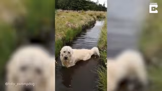 Tal y como se puede ver en este vídeo, el adorable Toby, que luce un impresionante pelaje rubio, siempre se las arregla para acercarse al más pequeño charco de barro y terminar cubierto de patas a cabeza.