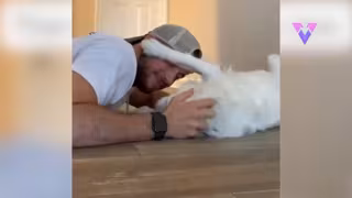En el vídeo aparece Plum, su perrita sordociega de un año, echándose una siesta en el suelo. De pronto, Aiden se acerca a ella para despertarla con un suave soplido en su cara, logrando con éxito su propósito de no asustarla.