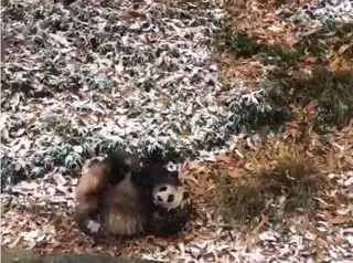 Parece que le hace muy feliz estar en contacto con la nieve. Desde luego, lo parece por la hiperactividad del oso. Normal, pues el hábitat de los osos panda está en las nevadas montañas del sur de China. Puede que le haya recordado a su hogar, por eso la alegría irrefrenable. ¿No es adorable?