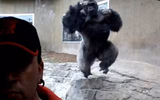 Las imágenes quedaron grabadas en la cámara con la que uno de los visitantes intentaba tomarse un 'selfie'. En ellas se ve como Kijito, que así se llama el gorila en cuestión, se aproxima corriendo hacia la mampara y se estampa con ella mientras el visitante se encuentra de espaldas a él.